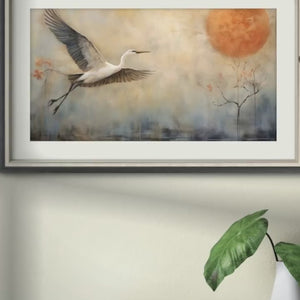 Embrace the beauty of dawn with Cranes in Morning Light, a captivating digital artwork that captures the tranquility of the early hours. This piece features graceful cranes illuminated by the soft hues of sunrise, evoking a sense of peace and serenity.