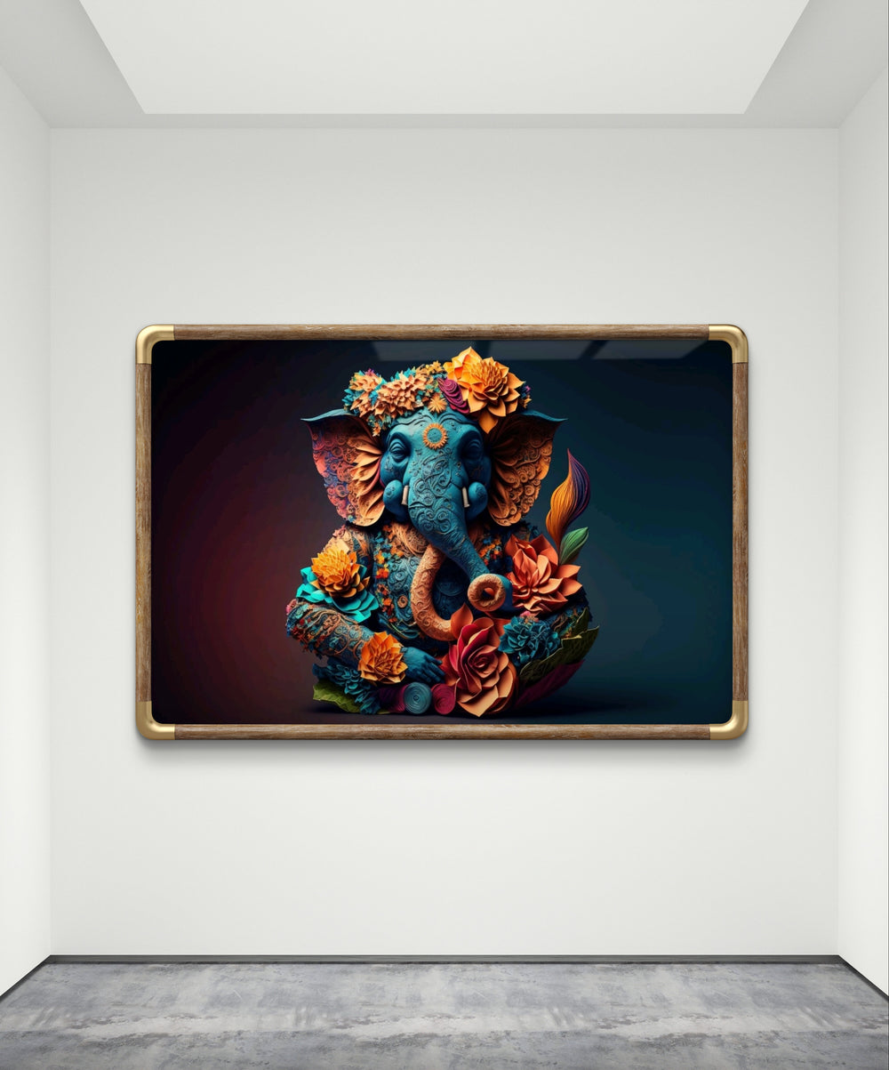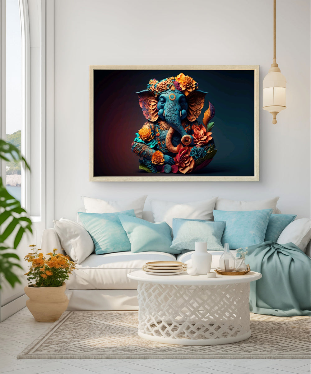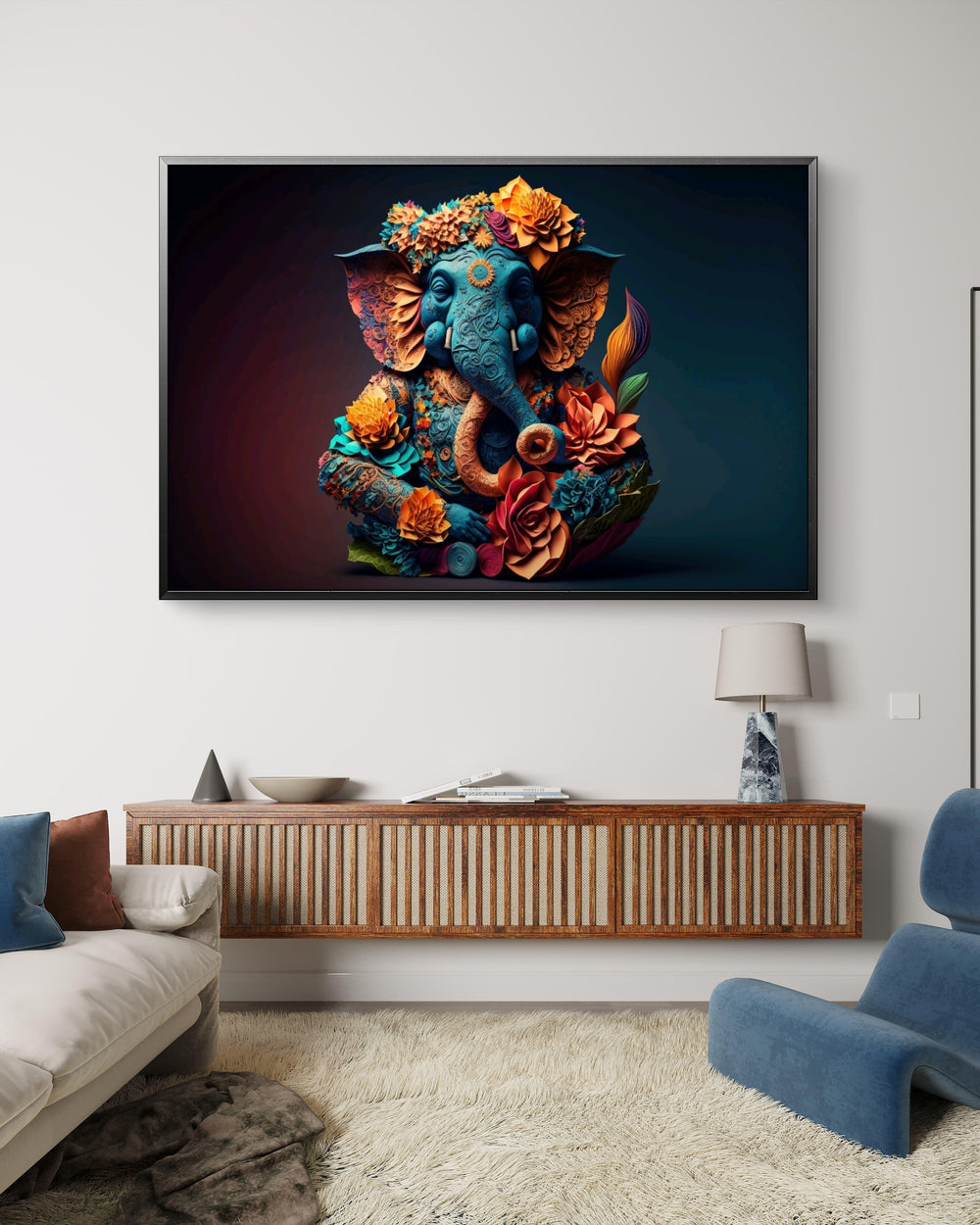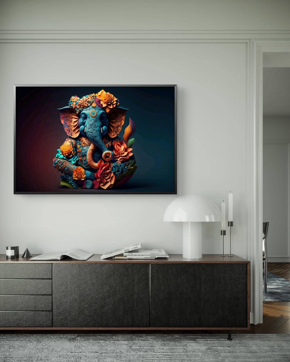 This vibrant digital painting of Lord Ganesh, revered in Hinduism, brings divine energy and blessings into your home. Perfect for spiritual and art lovers, this "Ganesh painting decor" enhances your living space with its intricate details and vivid colors, symbolizing wisdom, prosperity, and protection. Ideal for home or office, this artwork is a must-have for auspicious beginnings.