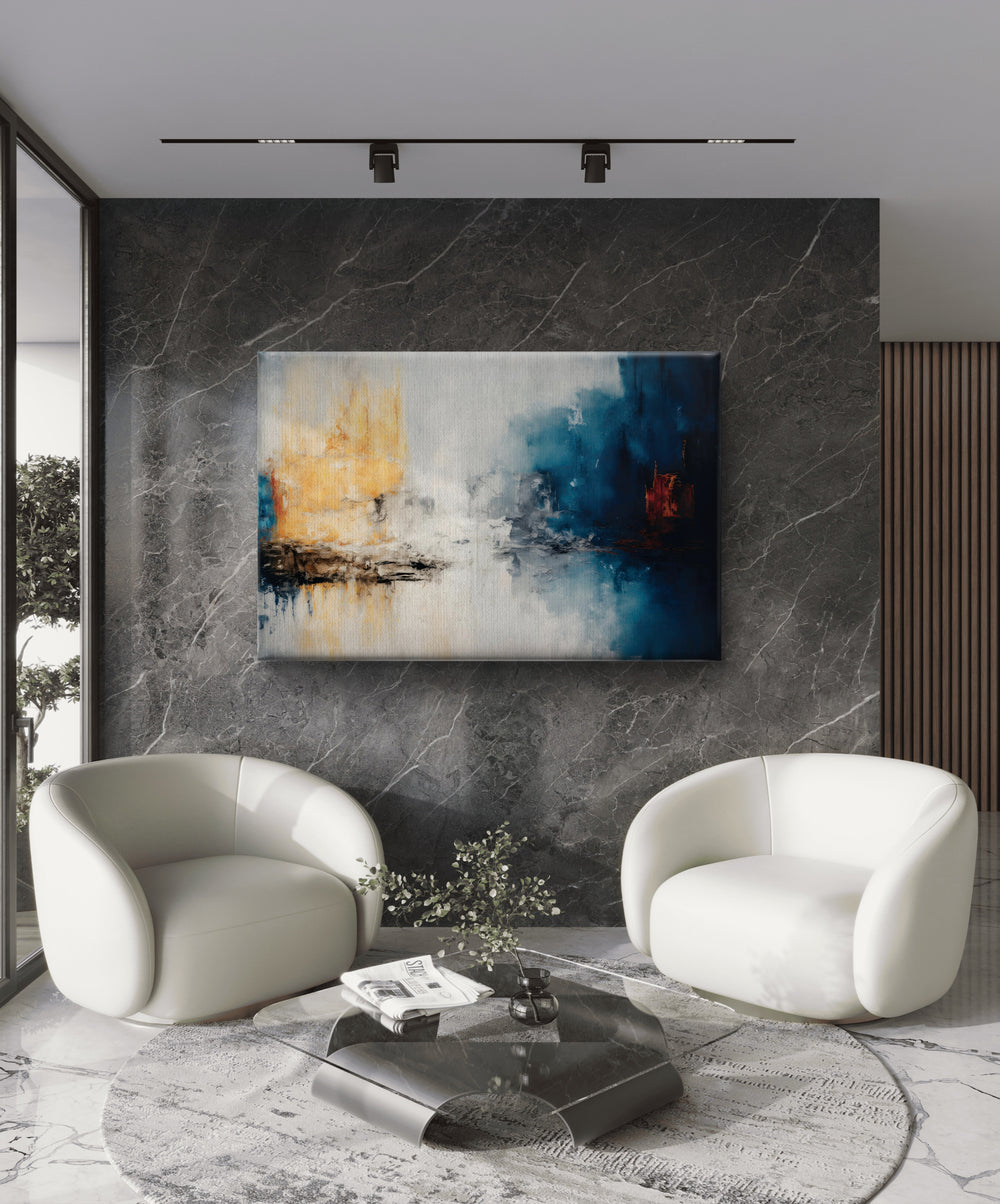Vastu Benefits:East or North Placement: Enhances positive energy flow and tranquility, aligning with Vastu principles. - Balanced Colors: Whites symbolize purity, blues bring calmness, and yellow signifies positivity, contributing to a harmonious living space.