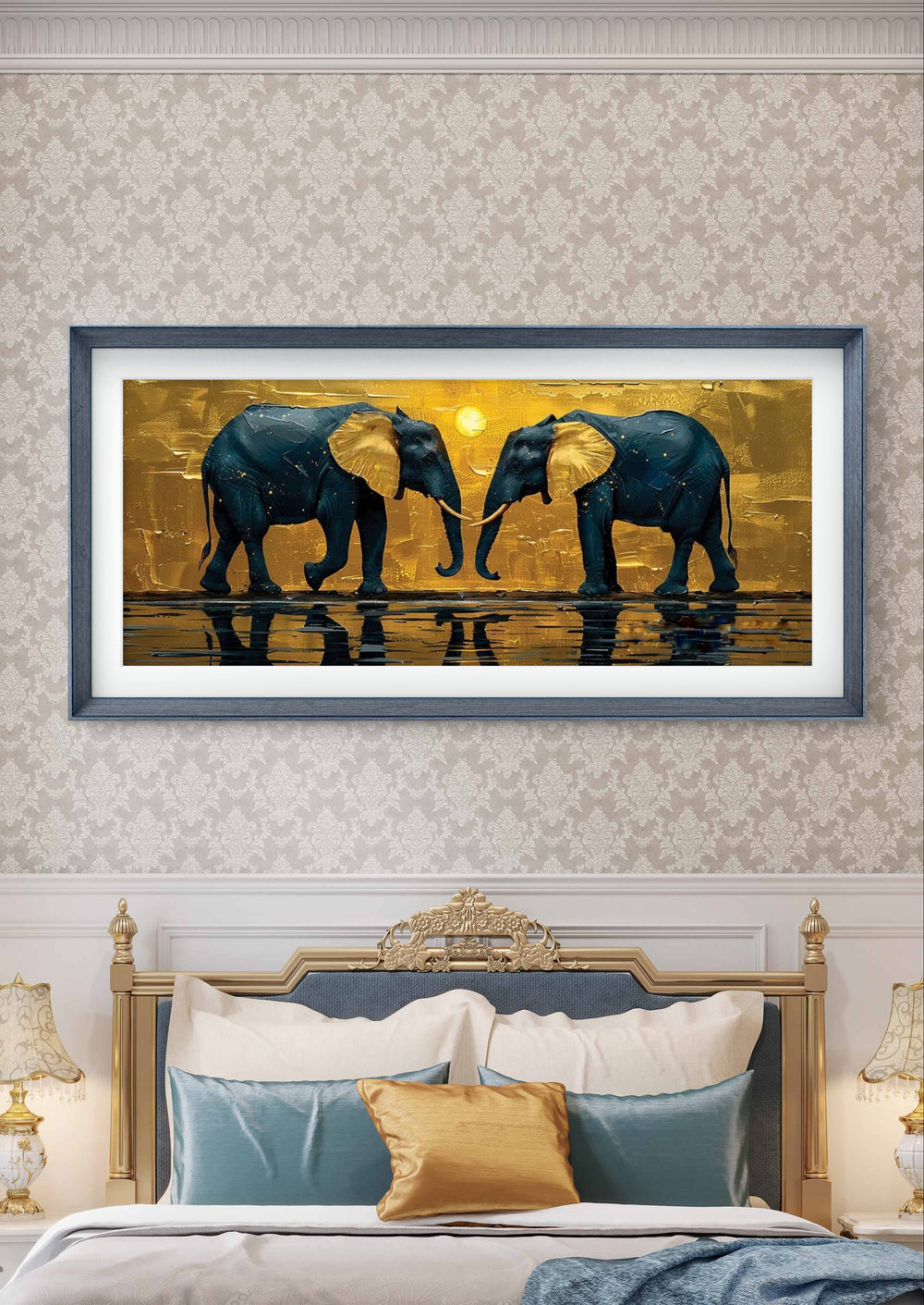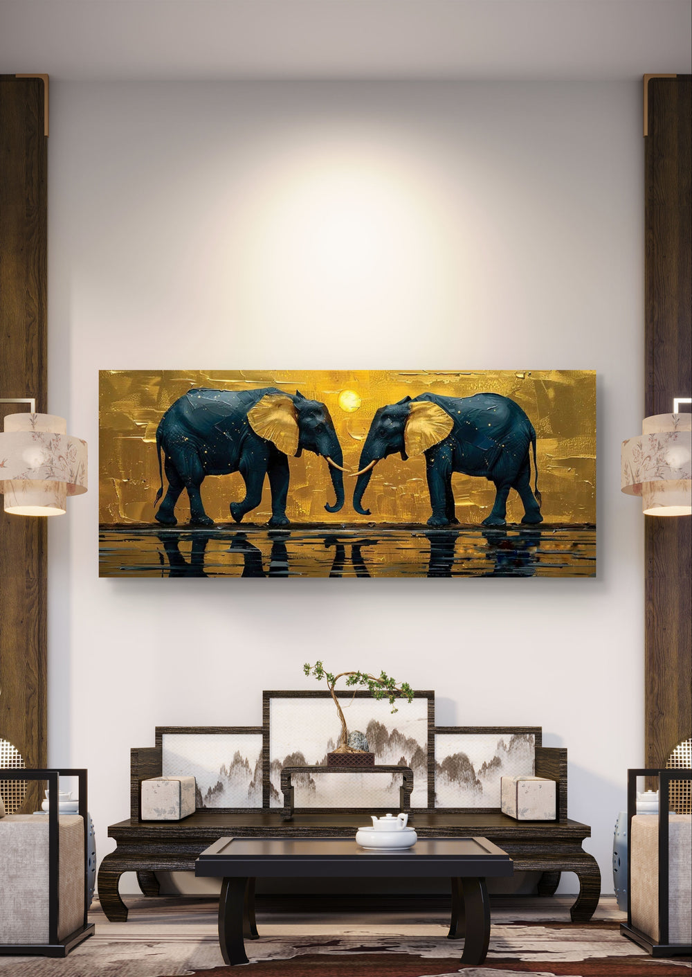 Golden Ear Duo Elephant Guardian Digital Vastu Painting