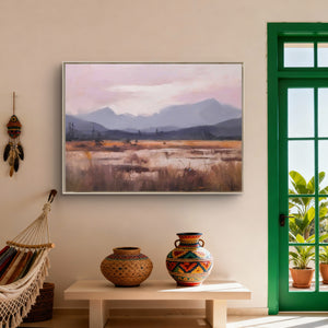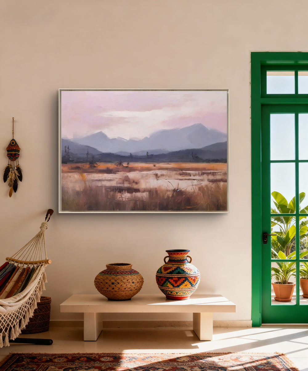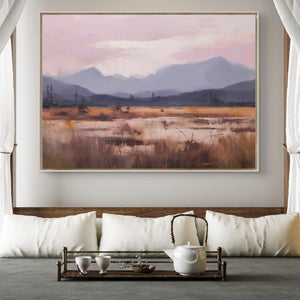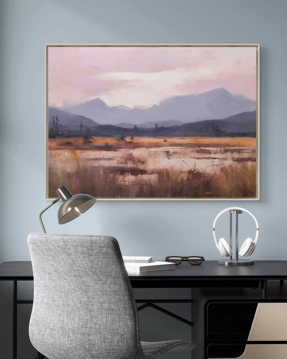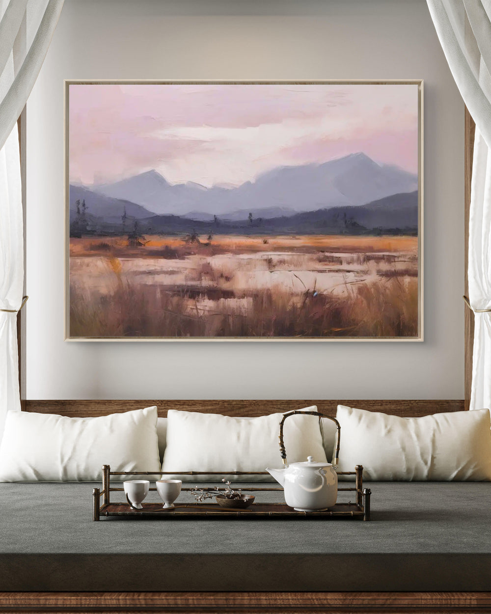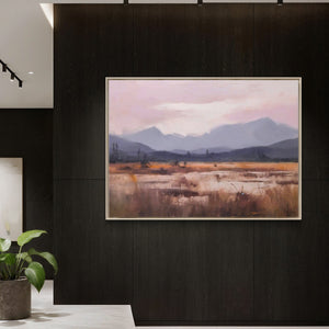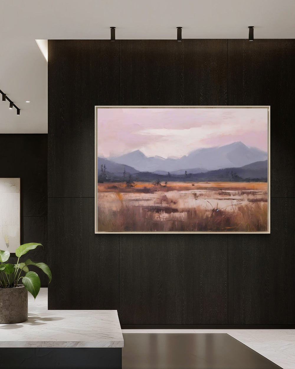 Explore the serene beauty of Golden Fields with Abstract Mountain Silhouettes, a captivating painting featuring abstract mountain silhouettes against a backdrop of golden fields. With its bold strokes and warm tones, this artwork evokes a sense of tranquility and natural beauty.