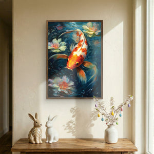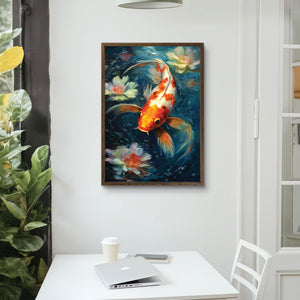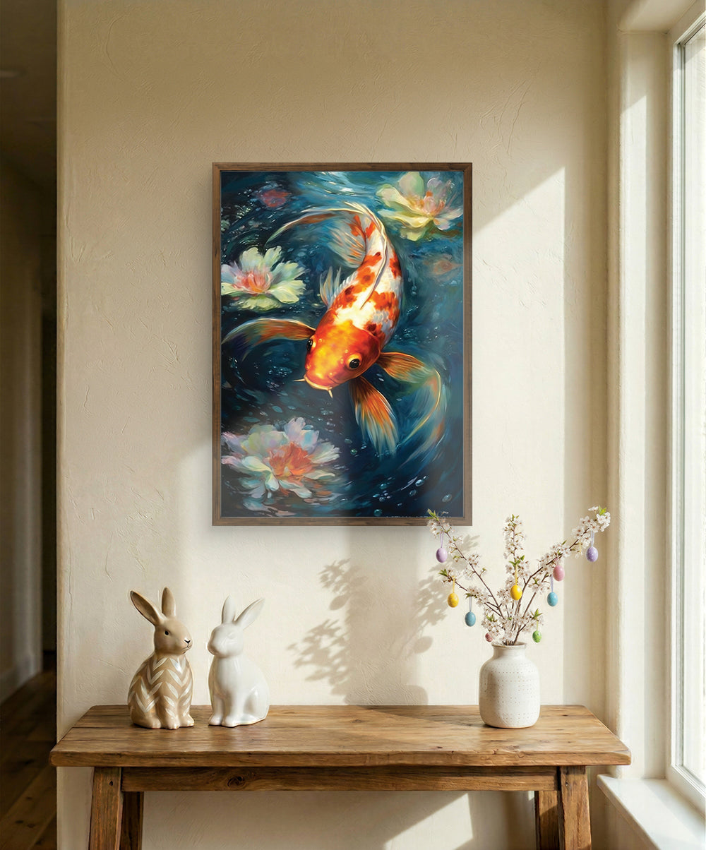 Display this gold fish painting vastu in the east for positivity and health or the southeast for wealth and abundance.