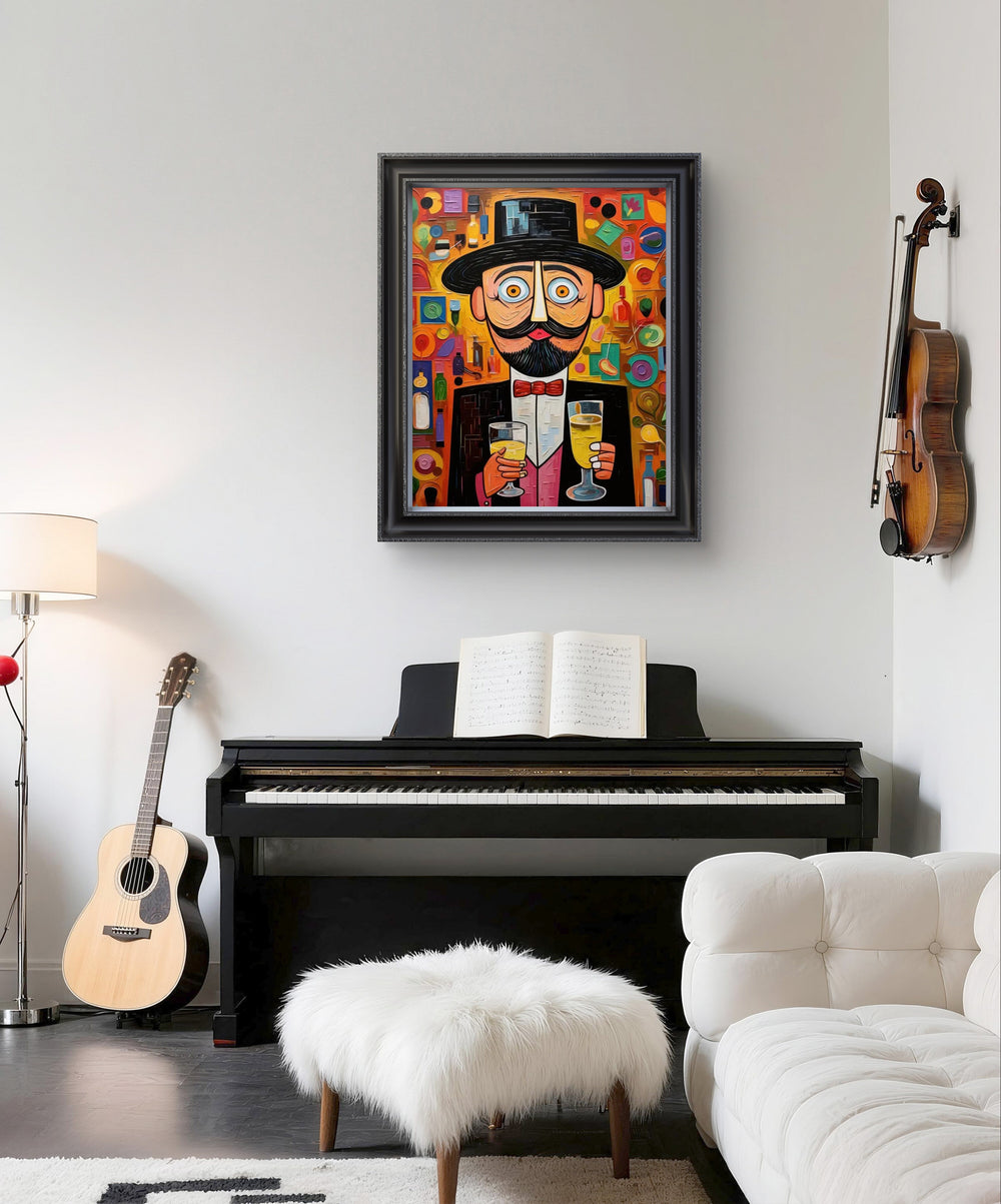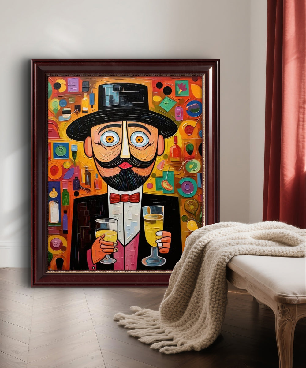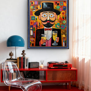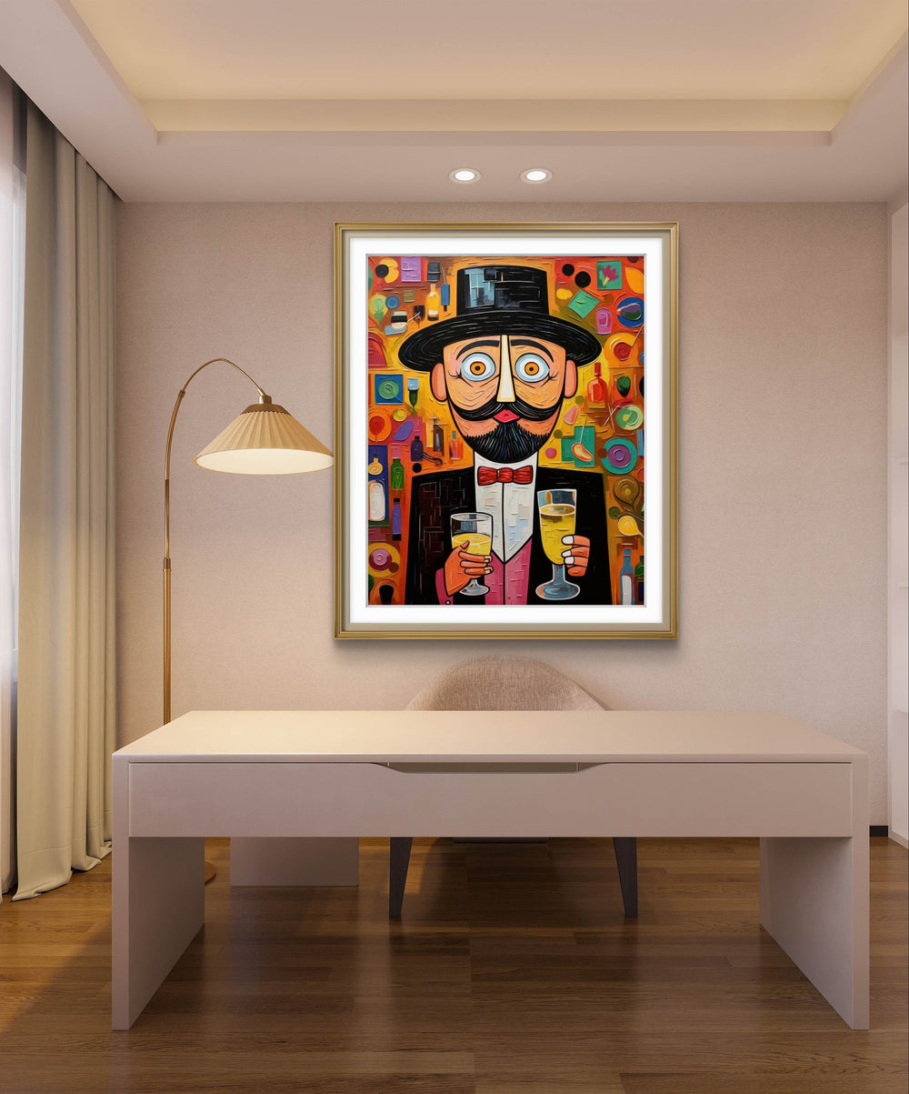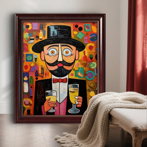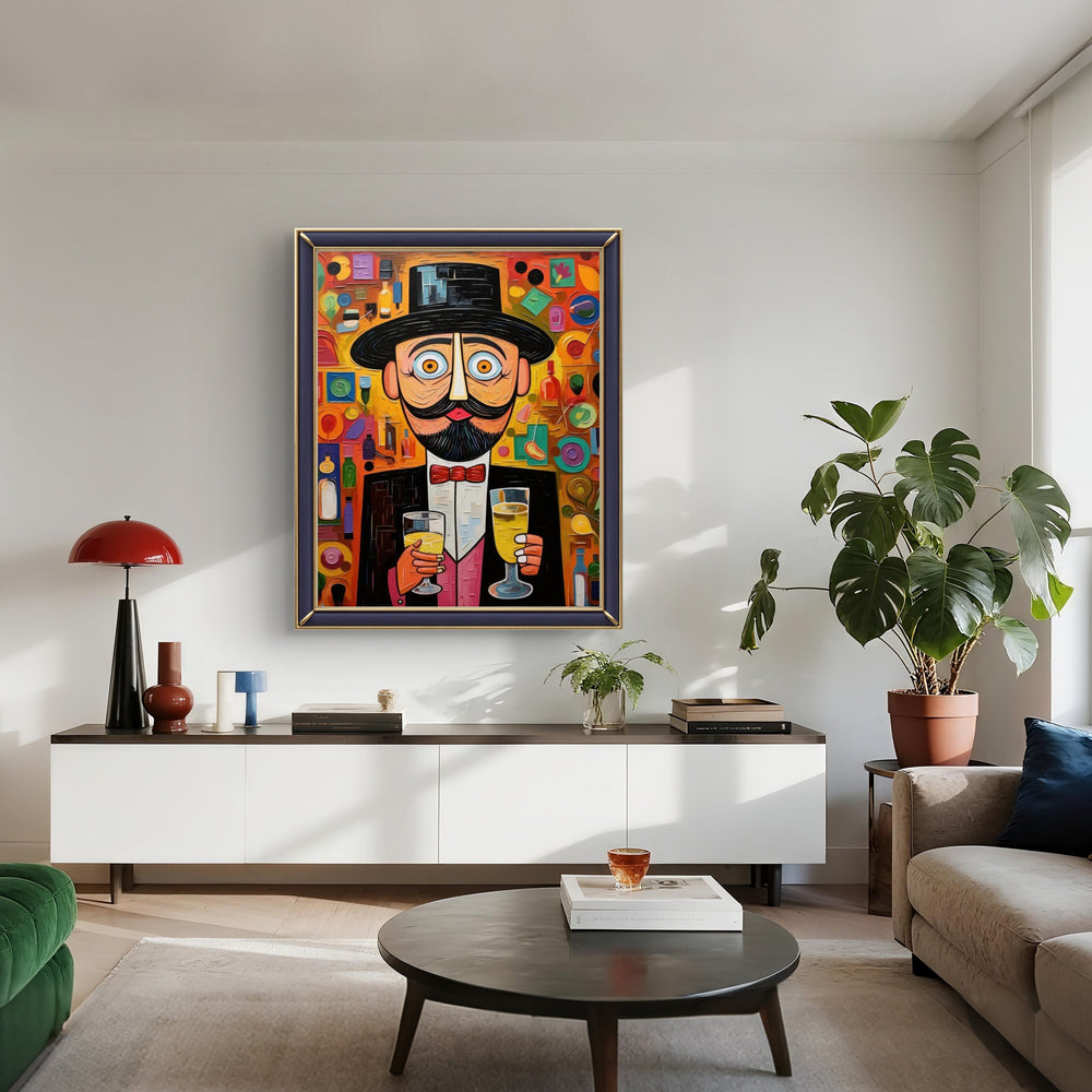 Upgrade your cafe wall with this unique Man with Moustache with Drink Glass Pop Art. This tasteful, contemporary art piece is perfect for creating a sophisticated and luxe atmosphere in your space. The Pop Art aesthetic adds unique style and gives your cafe an exclusive feel. Enhance your interior design with this classic conversation-starter.