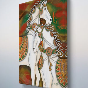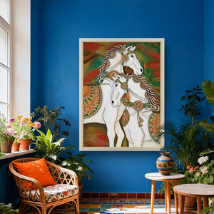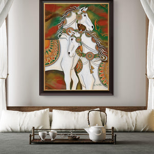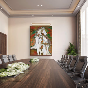 Perfectly blending modern artistic expression with ancient Vastu Shastra principles, this painting is more than decor—it's a tool for manifestation. The clear white color of the horses signifies purity, peace, and clarity of purpose, while their galloping motion is the ultimate symbol of forward growth in career and business.